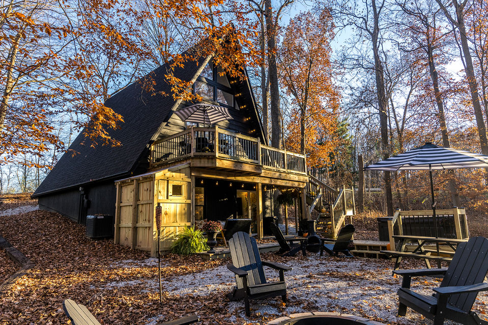 The Walker Getaway is located in Rockville Indiana and was built in 1982. It's unique A frame architectural design makes it a hidden jewel located on 5 acres of land.
